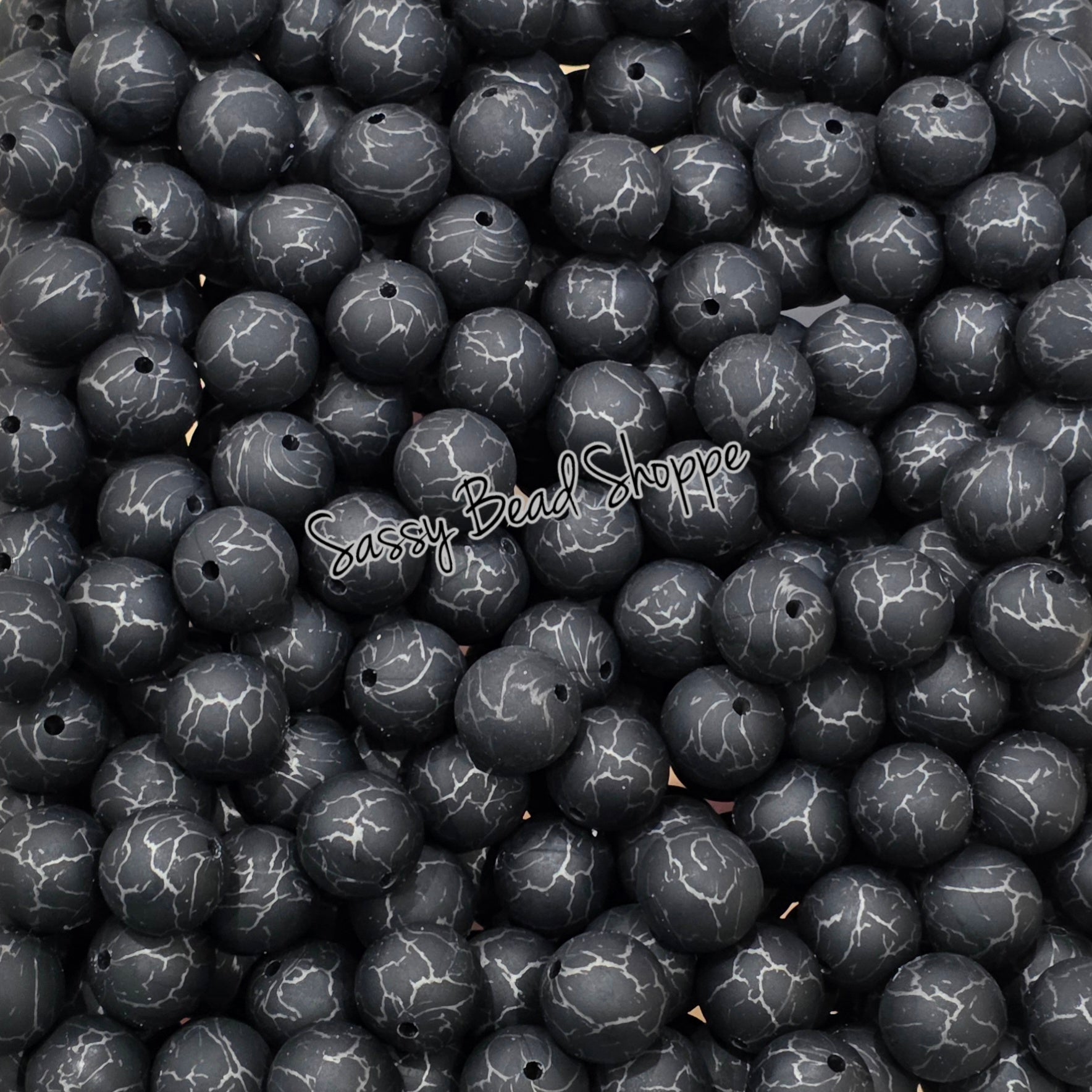 15mm Black Crackle Silicone Beads